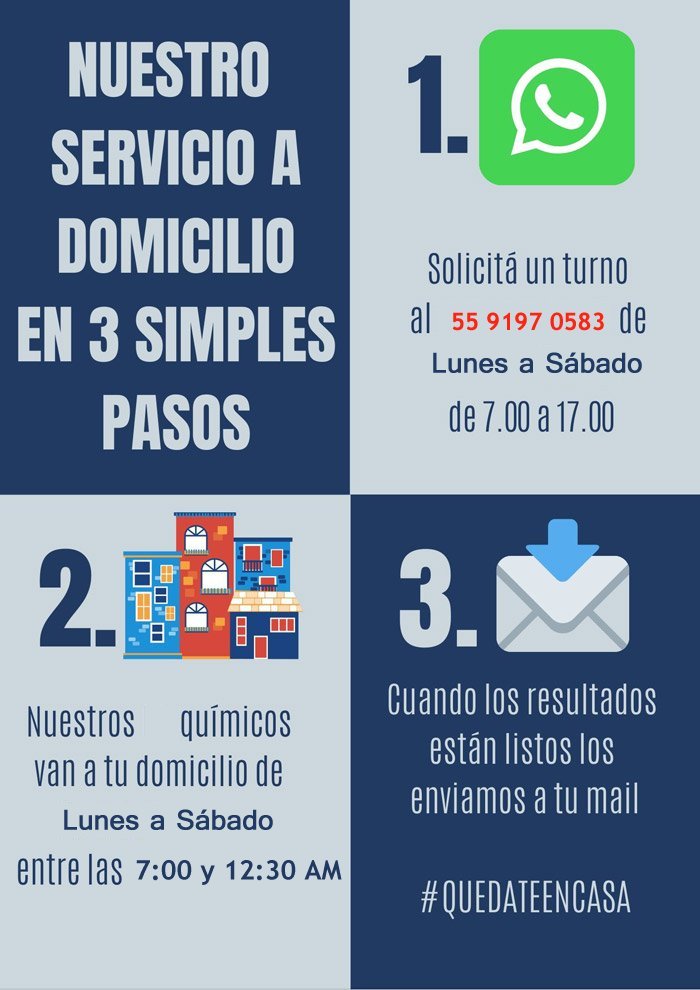 Para su comodidad y en caso de usuarios con impedimentos de salud que les limite su desplazamiento a el laboratorio, le ofrecemos la toma de los análisis en su residencia, el cual será atendido en fecha y hora convenida